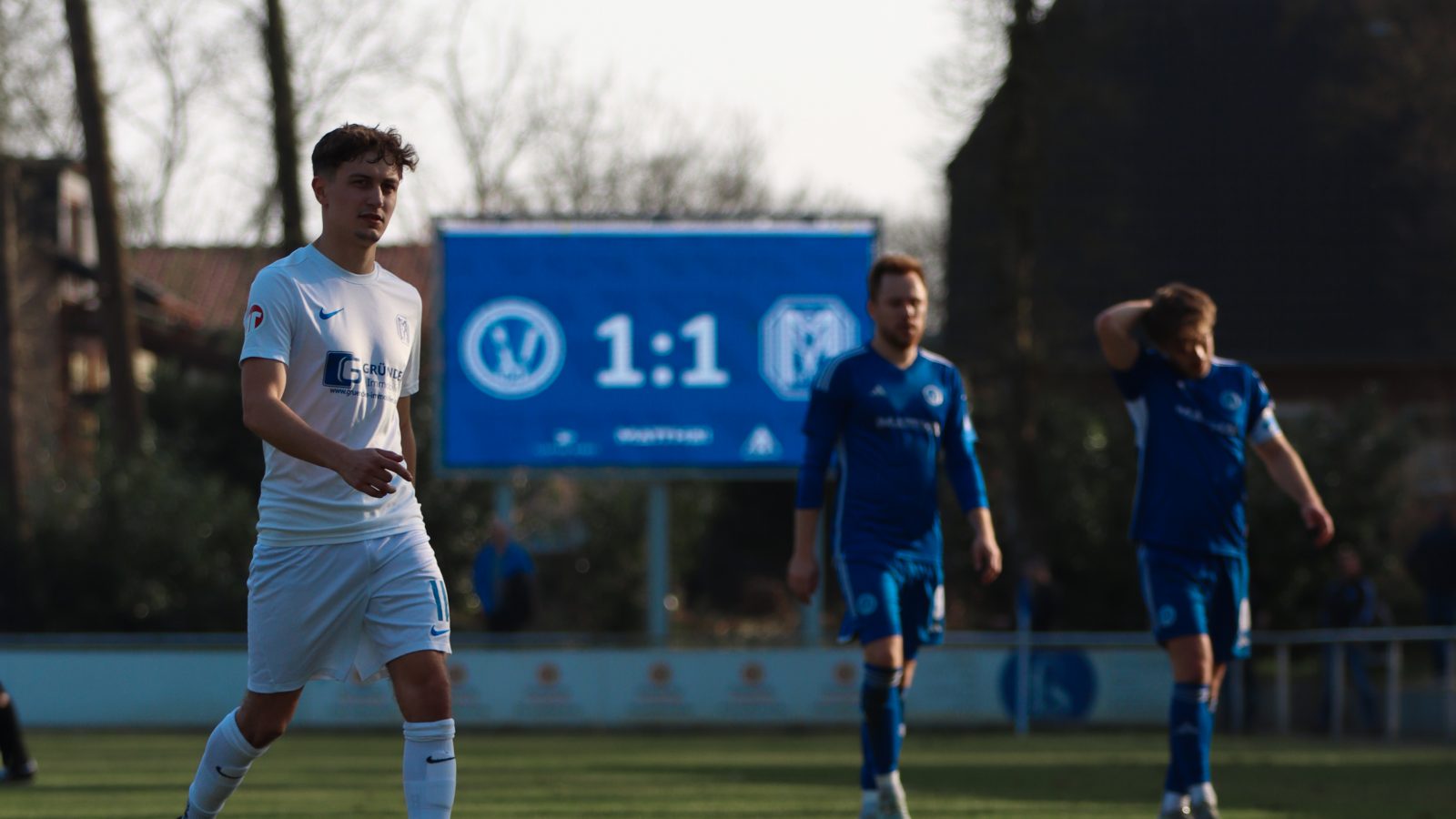 Das Heimspiel gegen den SV Meppen II war kein hochklassiges Oberligaspiel – das dürfte keinem Zuschauer verborgen geblieben sein. Intensiv war es trotzdem. Viele Zweikämpfe am Boden und in der Luft. Beim 0:1 aus unserer Sicht war es einer der wenigen Momente, an dem kein Zweikampf geführt wurde. Nach Standardsituation blieb der gegnerische Stürmer am langen Pfosten komplett blank und hatte dementsprechend keine Mühe bei seinem Führungstreffer. Das war leider zu einfach. Wir zeigten aber generell eine erste Halbzeit, in der wir ein klares Chancenplus hatten. Eine dieser Chancen konnte Bastian Reiners in der 40. Minute per schönem Volley zum 1:1 verwerten. Ein wenig später war dann Halbzeit.